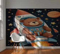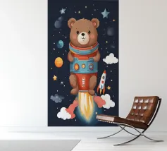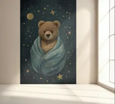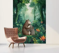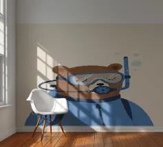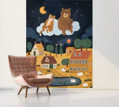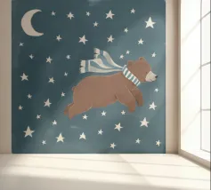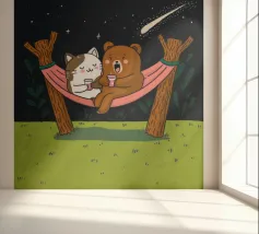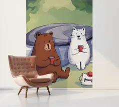 Een speelse illustratie van twee beren die bellen blazen in de ruimte die plezier en verwondering toevoegt aan elk decor of kleding. Perfect voor dromers van alle leeftijden.