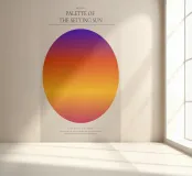 Ontdek de "Twilight Charm" met onze moderne poster uit de PALETTE OF THE SETTING SUN-serie. De chromatische cirkels geven deze stralende, kleurrijke beelden een eigentijds tintje.