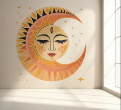 Dit zwarte, abstracte ontwerp van de hemelse maan, omringd door fonkelende sterren, brengt een edgy en artistieke flair en combineert de mystiek van de nachtelijke hemel met een eigentijdse, avant-gardistische stijl, waardoor het een opvallend stuk is voor elke ruimte en elk stuk.