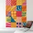 Een levendig en vrolijk abstract werk dat lijkt op een lappendeken, met verschillende patronen en texturen in heldere, zonnige kleuren. Het kunstwerk is een vreugdevolle viering van kleur en vorm.