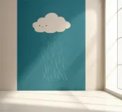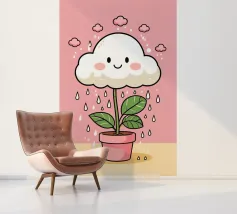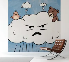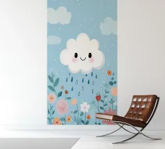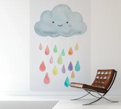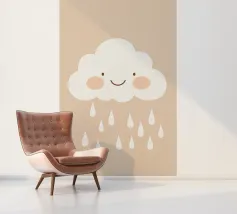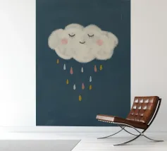 Droevig wolkje met regenbui. Handgeschilderd lief motief.