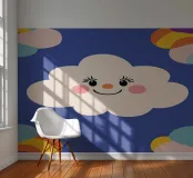 Wolken glimlachen, kunst voor kinderkamers, kleurrijke print