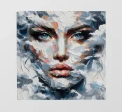 Schilderij van vrouw met wolken om haar heen.