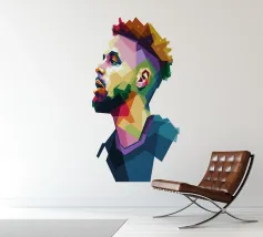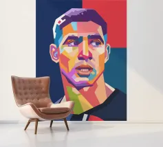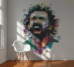 Coco in WPAP-stijl is een gedurfd en kleurrijk geometrisch portret van de beroemde Franse voetballer. Het WPAP (Wedha's Pop Art Portrait) kunstwerk, dat gebruik maakt van levendige kleuren en scherpe hoekige vormen, legt Coco's kalme vastberadenheid en iconische look vast en weerspiegelt zijn elegantie, kracht en vaardigheid op het voetbalveld.
