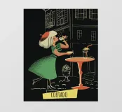 Cortado in Barcelona! Retro stijl. Papier & traditionele look & gevoel. Handgemaakte illustratie door mij. Handgetekend, papier & digitaal potlood, pennen, penselen.