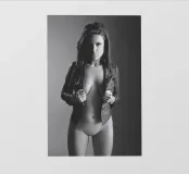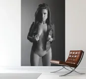 Een kunstnaaktfoto van een Deanne in een kort leren jasje.