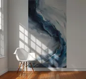 Donkerblauw gaat over in zacht wit als een draaikolk van stilte.