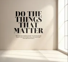 Vereenvoudig en focus met de motiverende muurschildering "Do Less, More". Met zijn strakke, minimalistische typografie stimuleert dit stuk de kracht van kwaliteit boven kwantiteit en herinnert het je eraan dat minder vaak meer kan zijn om je doelen te bereiken. Het is gemaakt van hoogwaardige materialen voor duurzaamheid en stijl en is perfect voor kantoren, studieruimten of huisdecoratie. Laat dit kunstwerk inspireren tot mindfulness en intentionaliteit en motiveer je om prioriteit te geven aan wat echt belangrijk is en afleidingen te elimineren voor meer succes en voldoening.