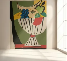 "Grape Array: Diversity in a Glass" toont een levendige verzameling druiven genesteld in een strak wijnglas, symbool voor harmonie in diversiteit. Dit opvallende stuk viert de schoonheid van verscheidenheid en eenheid door de kleurrijke overvloed van de natuur.