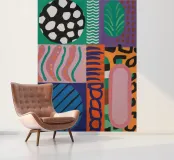 A vibrant grid showcases an eclectic mix of patterns, from polka dots and stripes to abstract organic shapes, creating a rich and decorative modern patchwork.