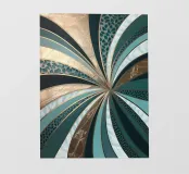 A captivating abstract painting featuring a swirling vortex of emerald green hues, accented by metallic gold accents and textured patterns. The artwork evokes a sense of depth and movement, drawing the viewer into its mesmerizing depths.