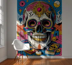 Kleurrijke Suikerschedel Kunst Samengesteld Uit Geometrische Eenvoudige Elementen