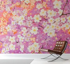 Be enchanted by "Blossom Magic"! Lush cherry blossoms in delicate shades of pink and white float on a soft lavender background, bringing the lightness of spring right to you. This romantic, airy pattern captures the grace of sakura – perfect for adding a floral, elegant touch to any room, accessory or product. Enjoy the enchanting feeling of blossoming spring moments!