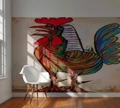 Cartoon, Drawing, Illustration, Painting, Animation, Animated cartoon, rooster, farm animals, whimsical, quirky, colorful, pastel, animals, pets, chicken, dreamy