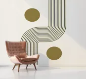 Een minimalistische verkenning van flow en balans. Dit werk bestaat uit een doorlopend, kronkelend pad van fijne parallelle lijnen die twee stevige okerkleurige cirkels met elkaar verbinden. De strakke compositie en rustgevende kleuren geven een gevoel van georganiseerde rust aan moderne, Japandi-geïnspireerde interieurontwerpen.