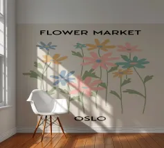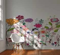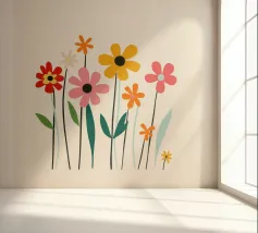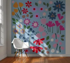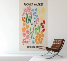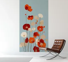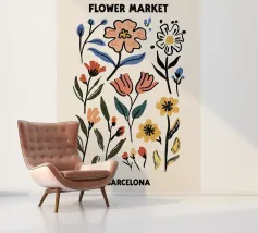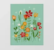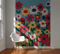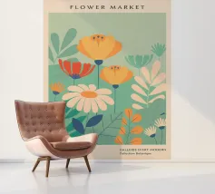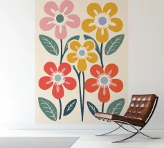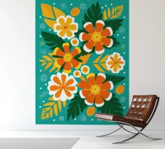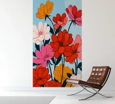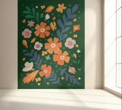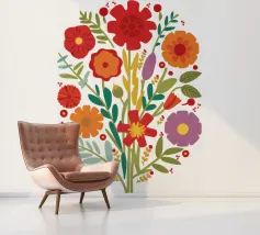 Deze bloemenillustratie in warme tinten straalt de frisheid van de lente en de komst van warmere dagen uit. Geïnspireerd door wilde bloemen, biedt het een vrolijke en levendige vibe, met zachte tinten rood, oranje en geel, die doen denken aan het eerste ontwaken van de natuur.