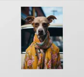 Absurde composities met mensenhonden. Mensenhonden die, net als wij, in Parijs, Los Angeles of Londen wonen en die, net als wij, gepassioneerd zijn door mode, auto's of helemaal niets. Honden die gedesillusioneerd, geamuseerd of geliefd zijn. Hippies en getatoeëerde honden. Kortom, honden die net als wij zijn. Of zijn wij zoals zij? Duik in de artistieke wereld van Dogland, een exclusieve collectie gewijd aan iedereen die zijn hond als een lid van de familie beschouwt. Hier is elke hondenposter een kunstwerk bedacht met humor, tederheid of elegantie. Of je nu een fan bent van buldoggen, teckels of corgi's, je zult de muurposter vinden die je huis zal laten blaffen van geluk. Geef je muren een honds accent met originele illustraties, afgedrukt op kwaliteitspapier, klaar om je interieur te sublimeren. Dogland is meer dan een winkel: het is een liefdesverklaring aan honden.