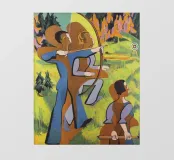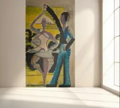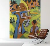 Ervaar de levendige energie van Ernst Ludwig Kirchners "Boogschutters" (1935-1937), een typisch werk van het Duitse expressionisme. Deze dynamische digitale poster toont het gedurfde kleurgebruik en de vereenvoudigde vormen van de kunstenaar en toont figuren die bezig zijn met de tijdloze daad van het boogschieten. Het kunstwerk weerspiegelt Kirchners fascinatie voor primitieve kunst en zijn verlangen om rauwe emotie en vitaliteit uit te drukken. Deze print, gereproduceerd op een uitzonderlijke resolutie van 7000 x 5000 pixels en 300 dpi, garandeert dat elke levendige tint en penseelstreek wordt weergegeven met precisie van museumkwaliteit en brengt de intensiteit van het expressionisme naar je interieur. Pe