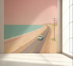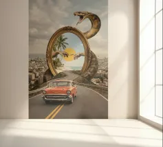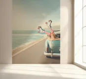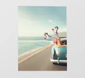 Experience the ultimate freedom and adventure with our vintage artwork. Feel the sun on your skin as you drive along the scenic coastline in a classic convertible. Imagine the wind in your hair as a carefree skater glides by the ocean. This masterpiece captures the nostalgia of a retro road trip and brings you closer to the beauty of an unlimited life. Perfect for any art and adventure enthusiast."