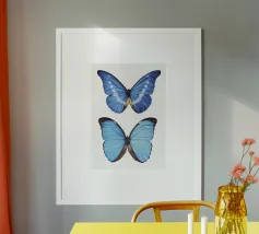 Verfraai je kamer met deze betoverende foto van libellen, waarop deze delicate wezens in al hun glorie te zien zijn. Libellen staan bekend om hun prachtige iriserende vleugels en sierlijke bewegingen en symboliseren transformatie en aanpassingsvermogen in de natuur. Dit prachtige beeld vangt de ingewikkelde details en levendige kleuren van deze prachtige insecten, waardoor het een perfecte aanvulling is voor natuurliefhebbers, entomologie liefhebbers, of iedereen die op zoek is naar een vleugje natuurlijke schoonheid in hun interieur.