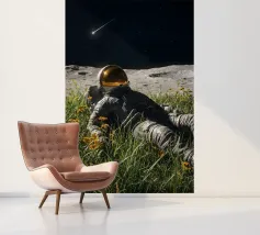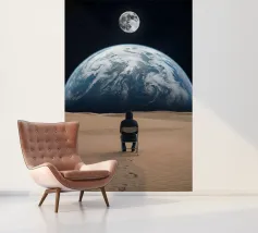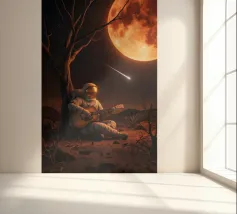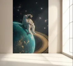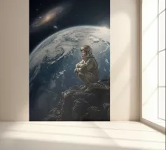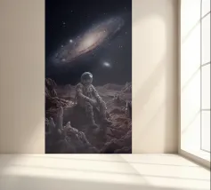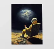 "In een ander kunstwerk uit de "My Space" serie, zien we onze hoofdpersoon genieten van een ontspannen dag terwijl hij de prachtige schoonheid van de maan aanschouwt vanaf een bevoorrechte locatie in de ruimte. Met een speels en surrealistisch tintje nodigt dit werk sciencefictionfans uit om zich onder te dompelen in een wereld van verbeelding en verwondering. De scène vangt het gevoel van sereniteit en ontzag dat je ervaart als je naar de kosmos staart, en biedt een spannende ontsnapping door de sterren en verder."