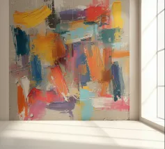 "Colors collide, textures emerge modern abstraction is the dance between canvas and imagination."