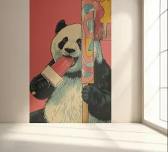 Voor echte pandaliefhebbers is de illustratie "Panda eet bamboe" de perfecte keuze! Dit ontwerp toont een schattige en expressieve panda die van zijn maaltijd geniet.
