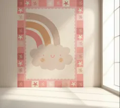 Brighten your space with Rainbow Cloud. Colours: Soft pinks, peach, cream, and warm neutrals. Perfect for nurseries, bedrooms and cozy reading nooks