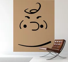Een simplistisch, abstract gezicht is getekend met dikke zwarte lijnen en heeft een opvallende gele stervorm op het voorhoofd. De uitdrukking is minimaal, met kleine stippen als ogen en een rechte lijn als mond.