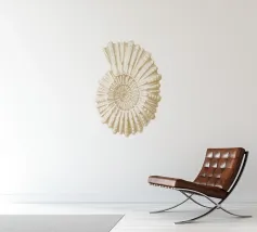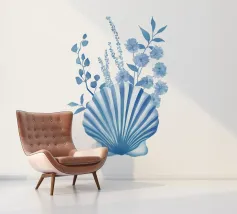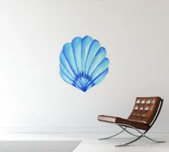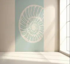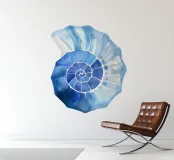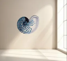 Eine blaue Nautilus-Muschel in sanften Blautönen vor einem weißen Hintergrund strahlt Ruhe und Ästhetik aus. Ihre spiralförmige Form und schlichte Schönheit laden den Betrachter ein, die Geheimnisse der Unterwasserwelt zu erkunden. Ein zeitloses Kunstwerk im maritimen Stil.