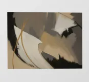 Sharp blacks and gentle golds crack across a muted field in dramatic quiet.