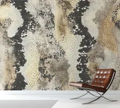 Deze elegante illustratie van een slangenpatroon in beige-bruine kleurtonen geeft de fascinerende textuur en wilde flair van reptielen weer en is perfect voor modern en elegant wonen.