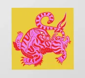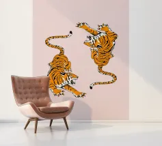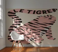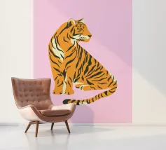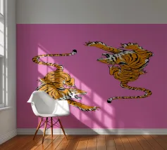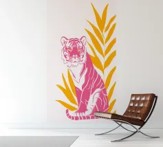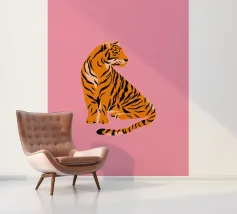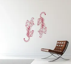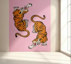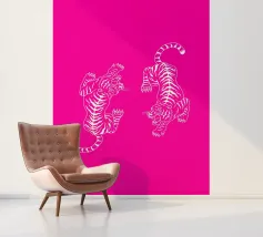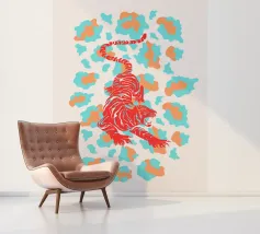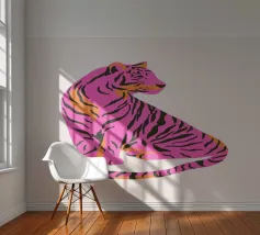 Tijgerontwerp, zeer felle kleuren die je producten meer pit geven. Heldere roodtinten verbeelden een tijger met dynamische, gebogen lijnen. De gestileerde afbeelding geeft de illustratie een bijna mythische kwaliteit en springt meteen in het oog. De contrasterende kleuren, vooral het felle rood en roze, creëren een sterke visuele aanwezigheid die energie en levendigheid uitstraalt. Dit ontwerp is ideaal voor verschillende producten zoals strandlakens, hoesjes voor mobiele telefoons of andere accessoires. De gedurfde