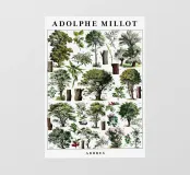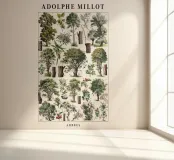 Een tijdloze vintage illustratie van Adolphe Millot met diverse bomen in verbluffend detail. Dit botanische kunstwerk combineert wetenschappelijke precisie met artistieke elegantie, waardoor het perfect is voor natuurliefhebbers, klassieke interieurs of educatieve ruimtes. Een prachtig natuurhistorisch kunstwerk dat organische charme en verfijning brengt aan elke muur.