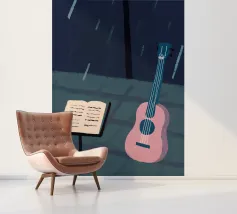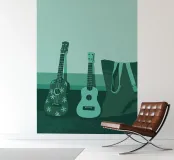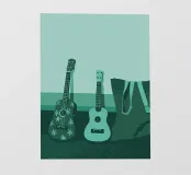 Een unieke en fascinerende artistieke stijl. Twee gitaren in prachtig detail afgebeeld,