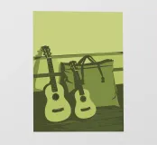 Een unieke en fascinerende artistieke stijl. Twee gitaren in prachtig detail afgebeeld,