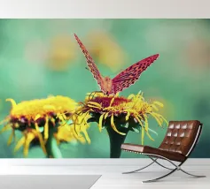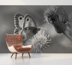Vlinder op bloem in beige kleuren