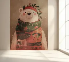 An illustration of a humming bear. This design brings a cozy, whimsical touch of winter magic, perfect for adding a touch of charm and warmth to any part of your life.