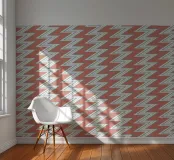 Dit kunstwerk is een naadloos zigzagpatroon in perzik koraal en groen. Dit unieke ontwerp combineert moderne esthetiek met een retro charme. Perfect om een stijlvolle flair toe te voegen aan je inrichting of accessoires, het brengt een levendige, verfijnde sfeer in elke ruimte. Bekijk het en fris je look op!