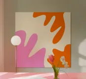 Abstracte moderne vormen - roze, oranje en crème hahnemühle
