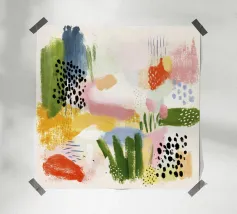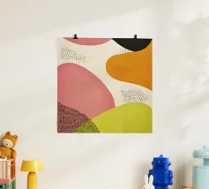 Een harmonieus arrangement van organische vormen in een vintage-geïnspireerd palet: olijf, mosterd, koraal, blush en diep houtskool. Dit meubel heeft een mid-century moderne esthetiek met een subtiele knipoog naar Art Deco, met zacht gestructureerde oppervlakken die doen denken aan handwerktechnieken uit de jaren 1950 en 1960. Vloeiende rondingen ontmoeten gedurfde kleurblokken, waardoor een gevoel van dynamische balans en tijdloze elegantie ontstaat. Perfect voor woonkamers, studio's of kantoormuren, het brengt warmte, verfijning en een verfijnde retro-moderne sfeer in elke ruimte.