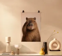 Een schattige capibara-illustratie omringd door motiverende tekst. De woorden moedigen individualiteit aan met een humoristische twist en benadrukken de charme van capibara's.