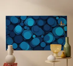 Dit kunstwerk toont een reeks levendige, overlappende cirkelvormen in verschillende kleuren, waardoor een levendig en boeiend abstract ontwerp ontstaat dat de aandacht trekt.