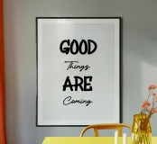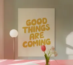 Voel de positieve geest elke dag met deze "Good Things Are Coming" muurkunst. Het minimalistische en betekenisvolle ontwerp zal je motiveren en een gezellige sfeer creëren in je huis of kantoor. Deze muurkunst is de perfecte investering voor langdurige schoonheid en inspiratie.