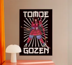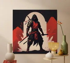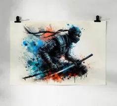 Deze spannende illustratie toont Hattori Hanzo als een vastberaden ninja in klassieke zwarte kleding, met een getekende katana en werpster. Als legendarische spion en lijfwacht van de Tokugawa stond hij bekend om zijn sluwheid, stealth en dodelijke precisie. De rode cirkel op de achtergrond doet denken aan de Japanse vlag en versterkt het visuele effect. Een ideaal motief voor fans van samuraiverhalen, ninja-mythen of de Japanse popcultuur. Het werk symboliseert vaardigheid, loyaliteit en stille efficiëntie - perfect voor iedereen die van subtiele helden houdt.