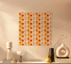 Dit aquarelpatroon in duindoorn is visueel opvallend. Het gebruik van oranje en groen creëert harmonie en geeft een gevoel van natuurlijkheid. Het patroon creëert beweging en energie en de herhaling van de duindoorn voegt eenheid toe aan het kunstwerk.