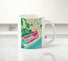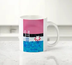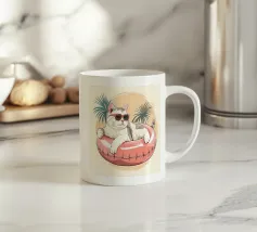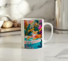 Een grillige en levendige illustratie van een ijsbeer die zijn beste leven leidt - zonnebril op, cocktail in zijn poot en drijvend in een kinderzwembadje met een mini-waterval. Tegen een warmroze tropische achtergrond brengt dit kunstwerk een vleugje humor en chill vibes in elke ruimte. Perfect voor liefhebbers van eigenzinnige kunst, retro-esthetiek en een relaxte houding. Of het nu voor je woonkamer, kantoor of zomerhuis is - dit kunstwerk staat garant voor een glimlach.