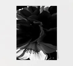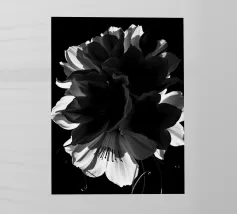 Deze fascinerende monochrome foto speelt meesterlijk met het spel van licht en schaduw en onthult een dramatisch boeket bloemen. Sommige bloemblaadjes baden in schitterend licht, waardoor hun delicate texturen en vormen worden benadrukt, terwijl andere zich terugtrekken in diepe, fluweelachtige duisternis, waardoor een scherp en meeslepend contrast ontstaat. De afwezigheid van kleur accentueert de ingewikkelde details en emotionele diepte van de compositie en nodigt kijkers uit om de subtiele nuances van licht en de diepe schoonheid in de schaduwen te verkennen. Het is een tijdloos werk dat een gevoel van mysterie, elegantie en het epos oproept.