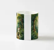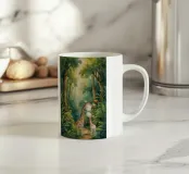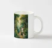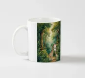 Breng warmte en rust in je interieur met dit betoverende aquarelkunstwerk van een liefhebbende moeder en babygiraffe die een teder moment delen in een weelderig tropisch bos. Perfect voor kinderkamers of op de natuur geïnspireerde interieurs.