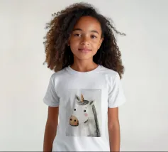 Al onze uniseks T-shirts voor kinderen worden geproduceerd en bedrukt door onze betrouwbare lokale partner.